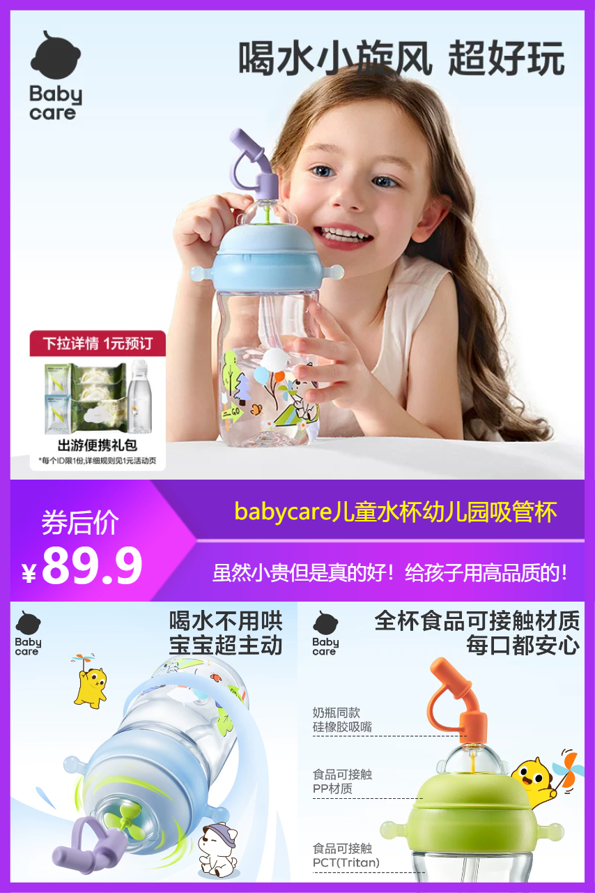 Babycare儿童吸管随手杯,大容量超适配幼儿园!安全材质无异味,防摔耐造不漏不洒,柔软吸管呵护乳牙。轻便易携带,上学出游都能用,一键开盖畅饮,从小养成自主喝水好习惯。