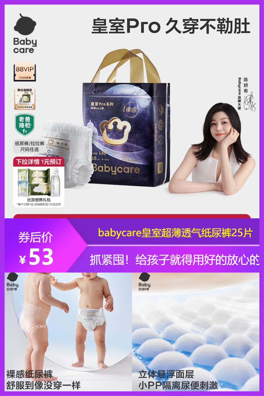 Babycare皇室超薄纸尿裤25片,弱酸亲肤表层,超薄透气不闷红屁屁。瞬吸干爽防侧漏,弹力腰围不勒肚,柔软云朵触感,安全无添加,新生儿敏感肌可用,日常护理安心之选。
