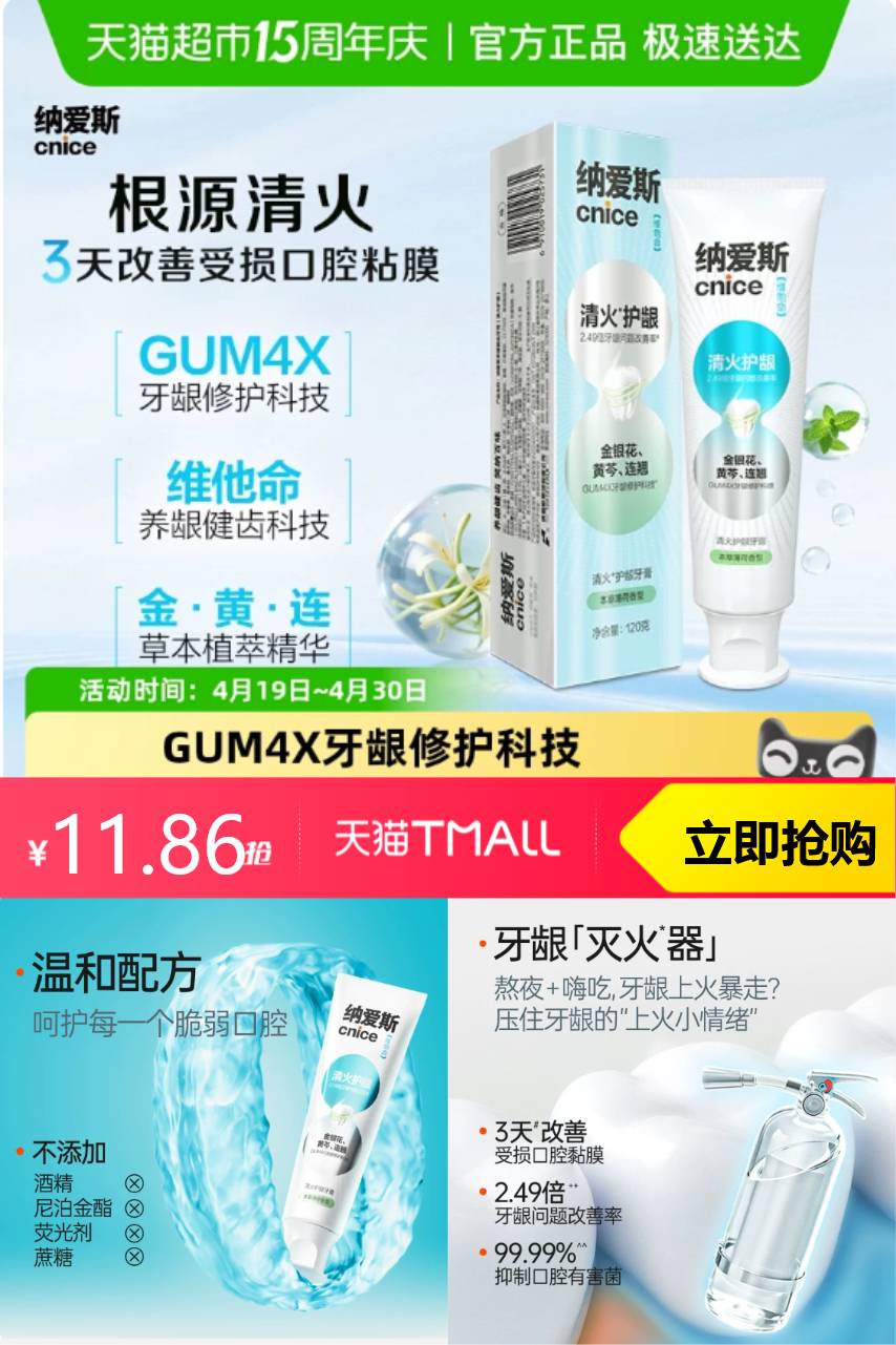 推荐:拍二纳爱斯清火护龈牙膏120g