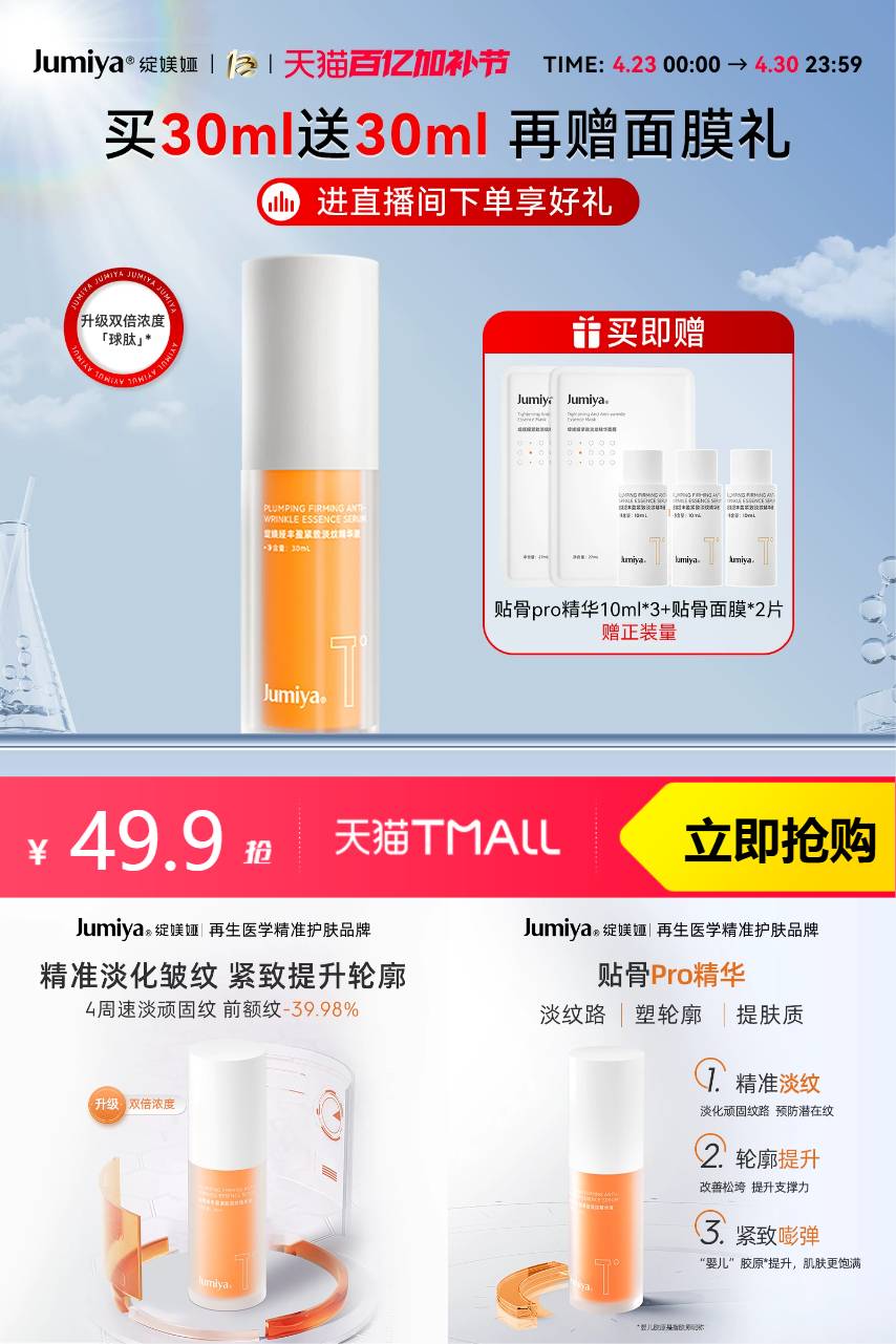 绽媄娅丰盈紧致淡纹贴骨Pro精华30ml 327.9元减40 商品纠错
