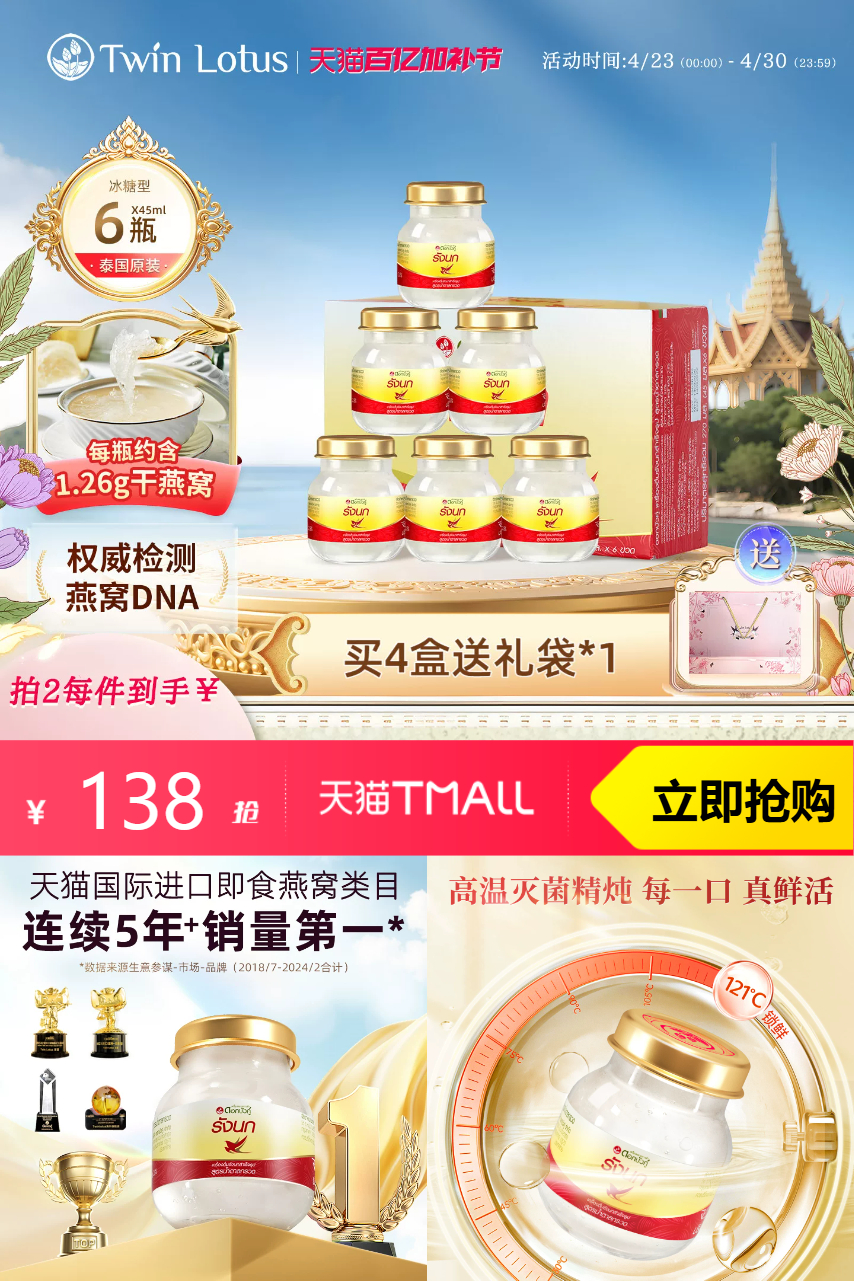 ⭕泰国进口正品双莲冰糖燕窝45mlx6瓶