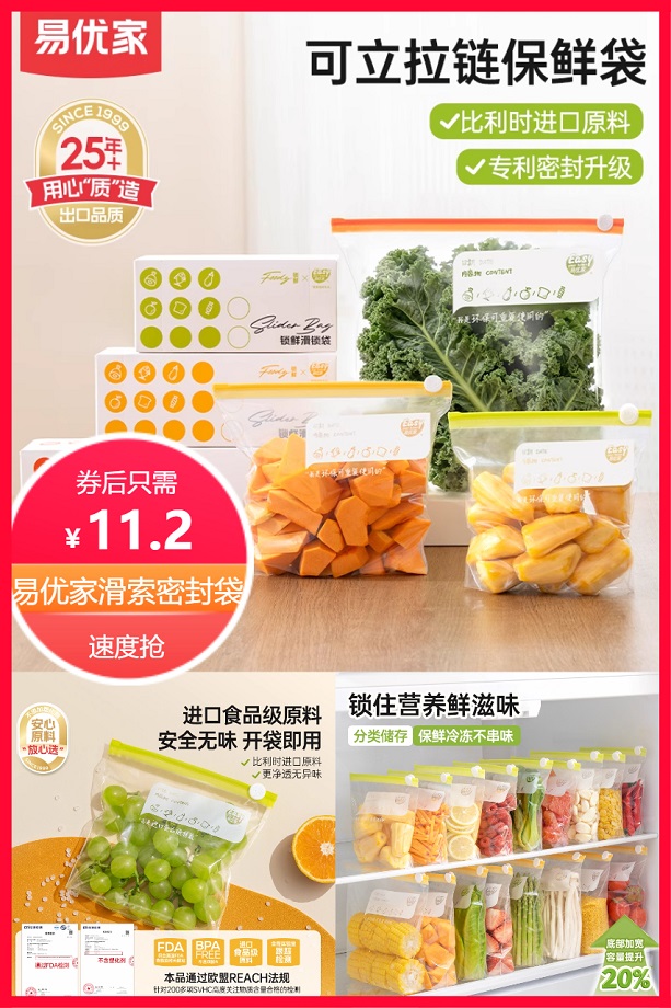 超级立减1.7元+券1元后约11.2元,买2件送PE手套150只,买3件送手套+保鲜膜】封袋拉链式,可站立,7种尺寸,多种用途,可重复使用,随心收纳,0.15毫米,畅快开合,食品级检测,不含BPA,塑化剂。