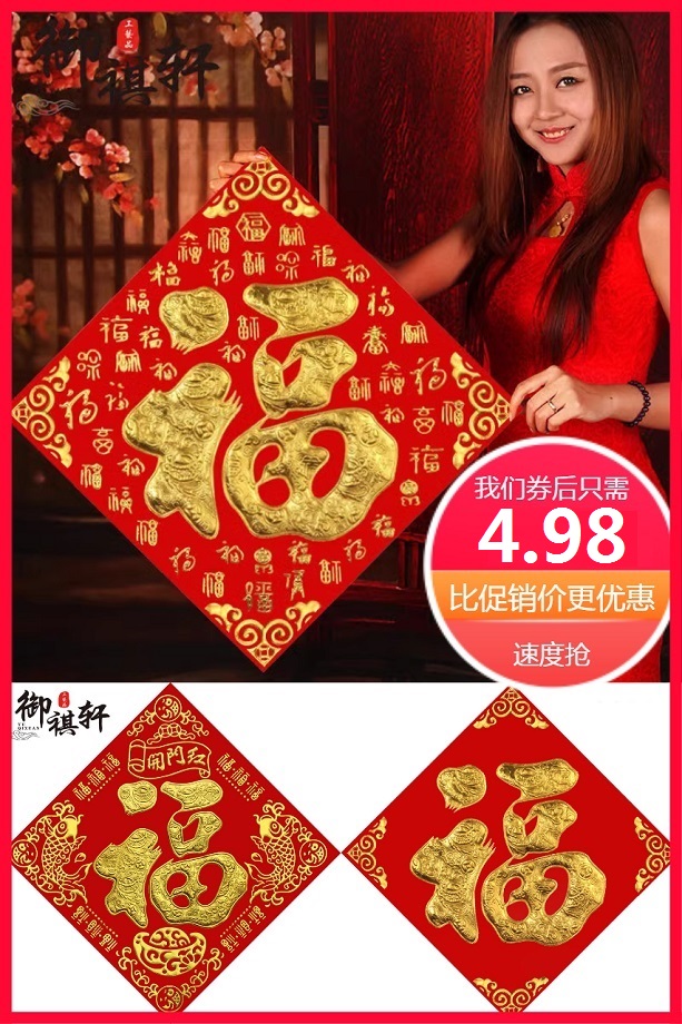 【首单+签到,立减0.82元】防水、防晒、防褪色!新年福气到,兴旺早到家!喜庆大红色,色彩艳丽,给家增添一点氛围!元旦春节都可以贴上啦~~~