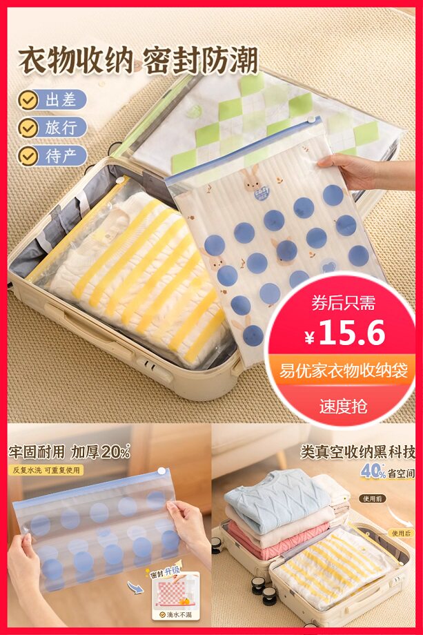 首单1元+淘金币抵扣0.37元+超级立减2.3元+券1元后约14.23元,满3件送滑索收纳袋,赠送运费险!进口食品级原料,出口品质18年,换季家庭收纳、差旅出行分装,可防尘防潮防水,线下大型商超均有售!