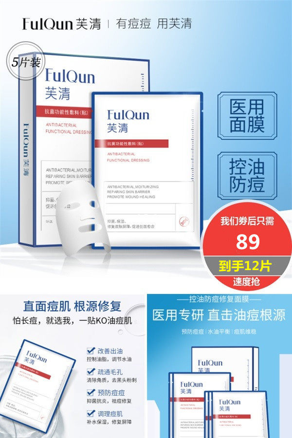 【拍第.一选项,限时多送两片,一盒+7片到手12片,速度抢!!】芙清医用控油祛痘面膜,控油清痘,调理油脂,闭口粉刺,敏感修复,补水保湿,给您一款专业的祛痘修复面膜,械字号医用无菌生产,三甲临床认证!