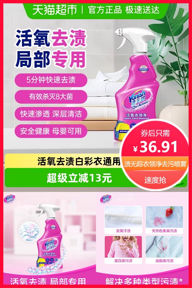 推荐:34元包邮渍无踪衣领净去污喷雾500ml