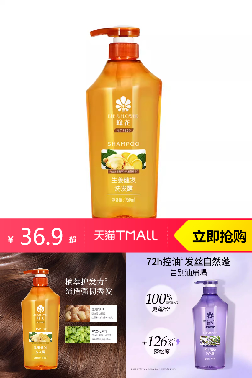推荐:买1赠6!蜂花生姜洗发露750ml