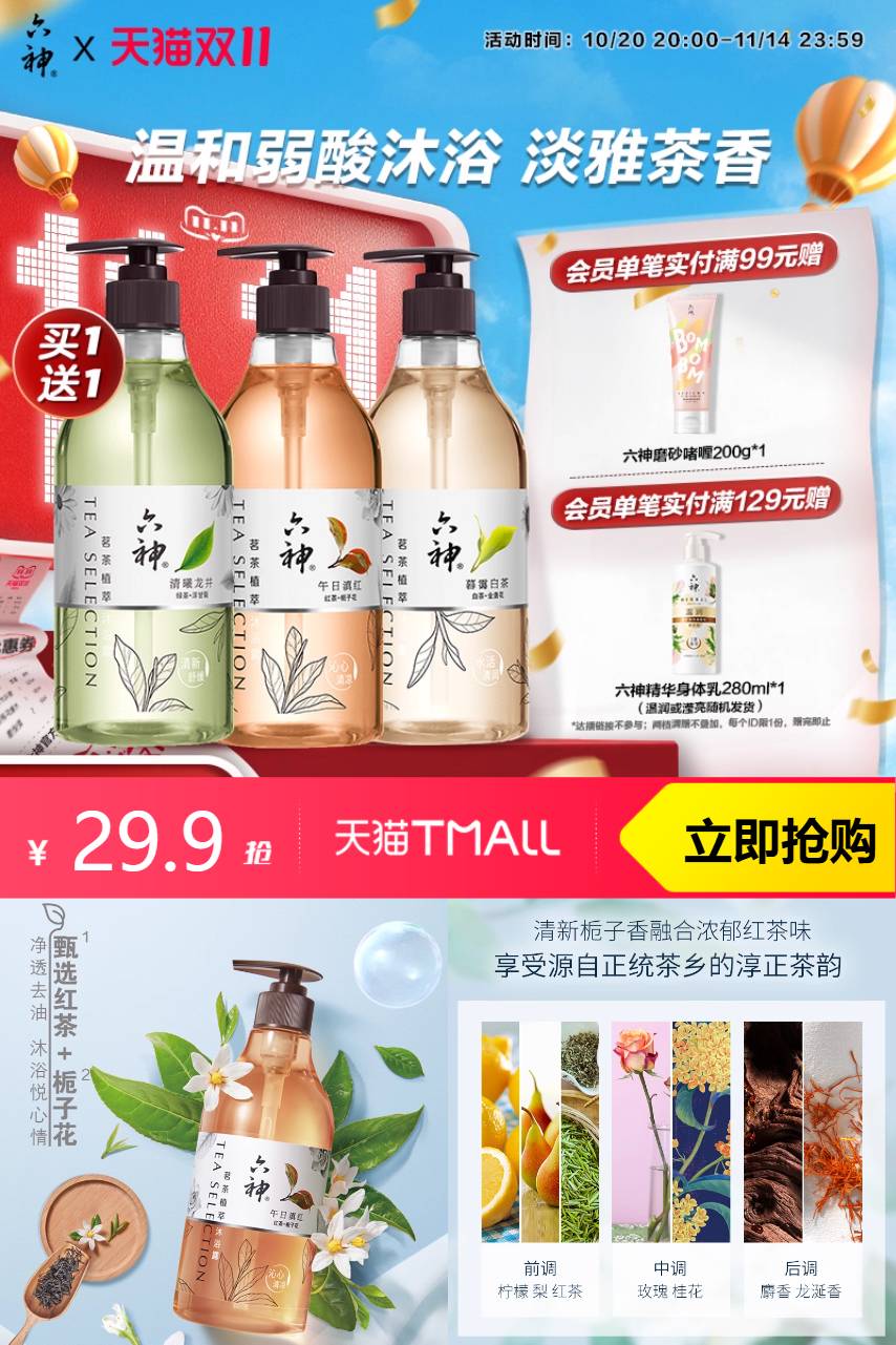 【淘金币抵扣3.93元,叠加消费券,再加天降红, 到手蕞缔17.97元】无皂基弱酸性,抑制多余油脂分泌,温和洁肤,洗后不紧绷!实验亲证告别“痘痘背”!六神茗茶植萃沐浴露~无皂基弱酸性配方,温和洁肤,洗后不紧绷,还能抑制多余油脂分泌!