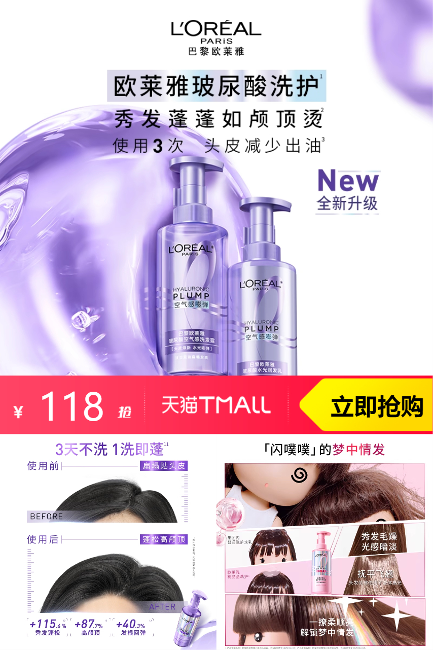 推荐:欧莱雅玻尿酸生姜洗护套装控油880ml