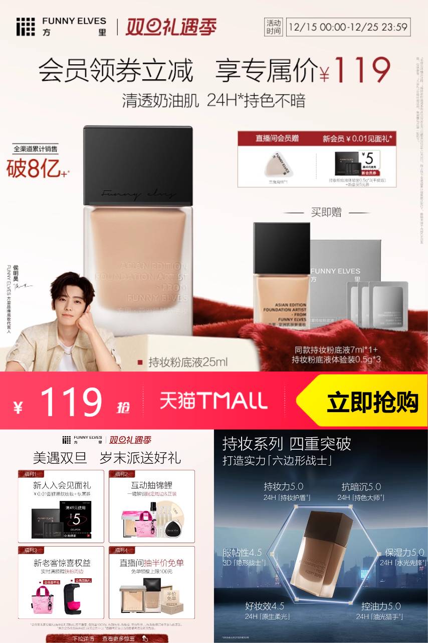 【入会领取10元会员券,买即赠同款粉底液7ml*1+持妆粉底液体验装0.5g*3】【侯明昊同款】方里持妆粉底液,方里持妆粉底液控油干油皮遮瑕持妆轻薄,没想到funnyelves粉底液巨润!!