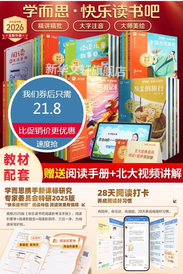 【赠送阅读手册+北大视频讲解】学而思快乐读书吧,北大哈佛名师领读+精讲特别版,精讲精批,大字注音,大师美绘,央视播音朗读,28天阅读打卡,养成阅读好习惯!