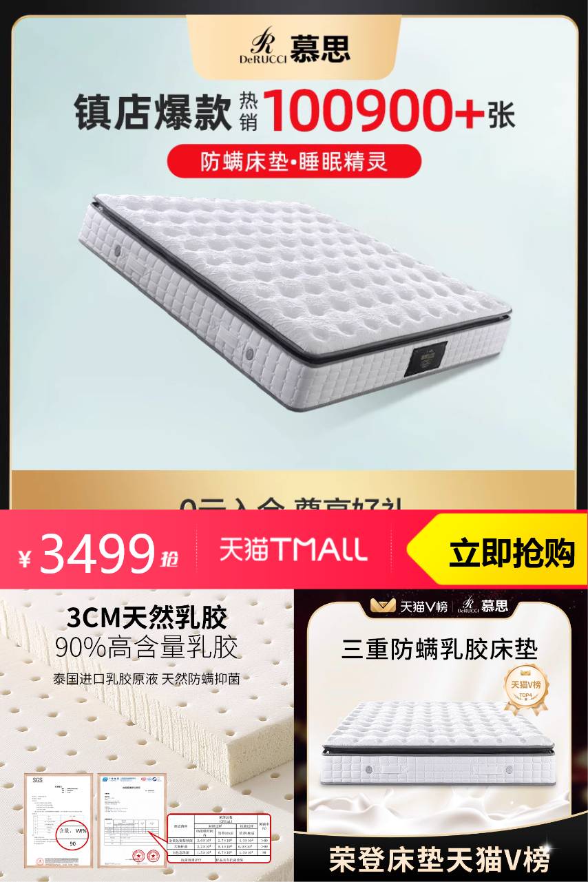 【7698-百亿补贴3699-闪电加补500-淘金币237.17-消费券200-国补15%=2602.56,淘金币可达2532!6期免息】【国补睡眠精灵】慕思乳胶床垫,乳胶材质,舒适柔软,席梦思般的享受!