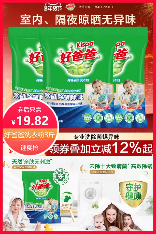 推荐:15元!除菌除螨除味洗衣粉3斤