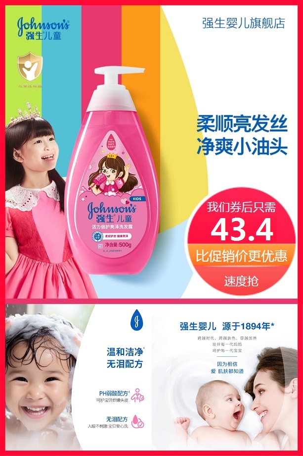 ⭕强生儿童温和无泪氨基酸亮泽洗发水500g