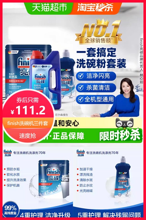 推荐:包邮105元洗碗机洗碗粉洗碗盐漂洗剂套装