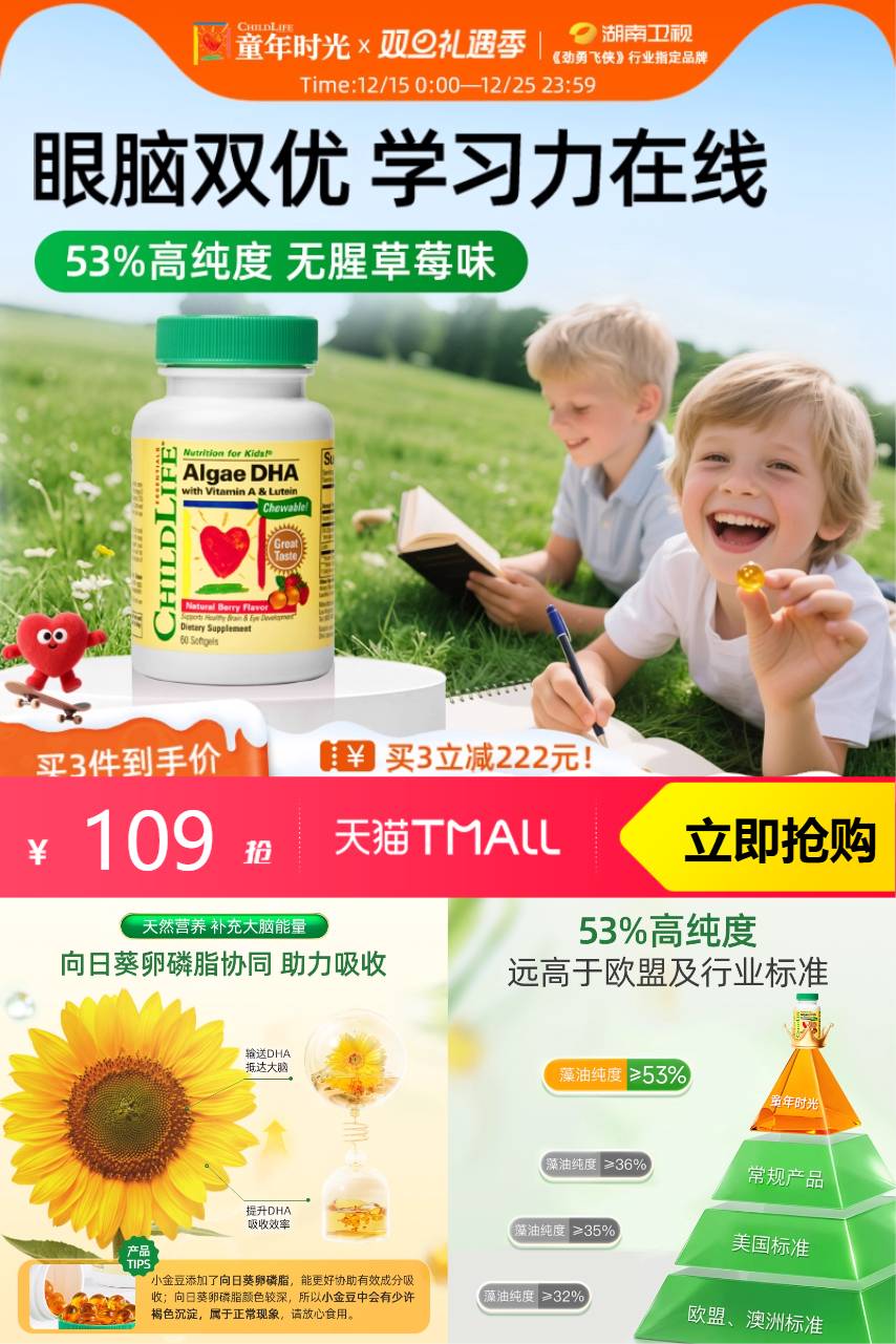 ⭕童年时光婴幼儿dha藻油非鱼油护眼补脑