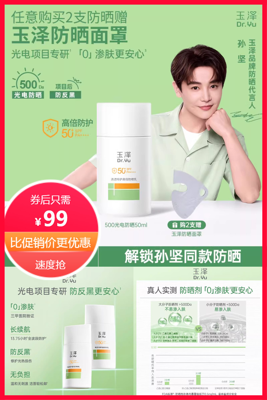 ⭕玉泽光电防晒乳敏感肌高倍防晒霜50ml