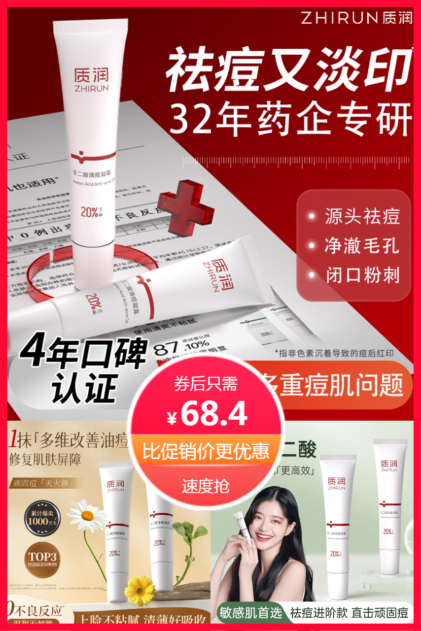 官方立减13.4+淘金币抵扣2.7元,质润20%壬二酸清痘凝露,植物成分,缓解刺激,清痘、去粉刺、改善黑头闭口,多种成分协同作战!