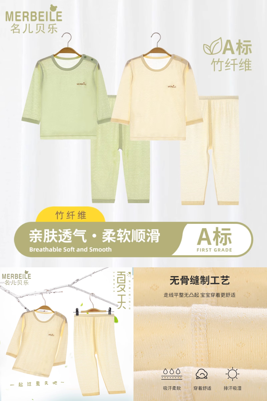 竹纤维面料,透气吸汗,弹性耐用!圆领设计,美观易穿,宝宝夏日舒爽加倍!薄透清爽,无骨缝制,绿色环保,守护宝贝娇嫩肌肤!