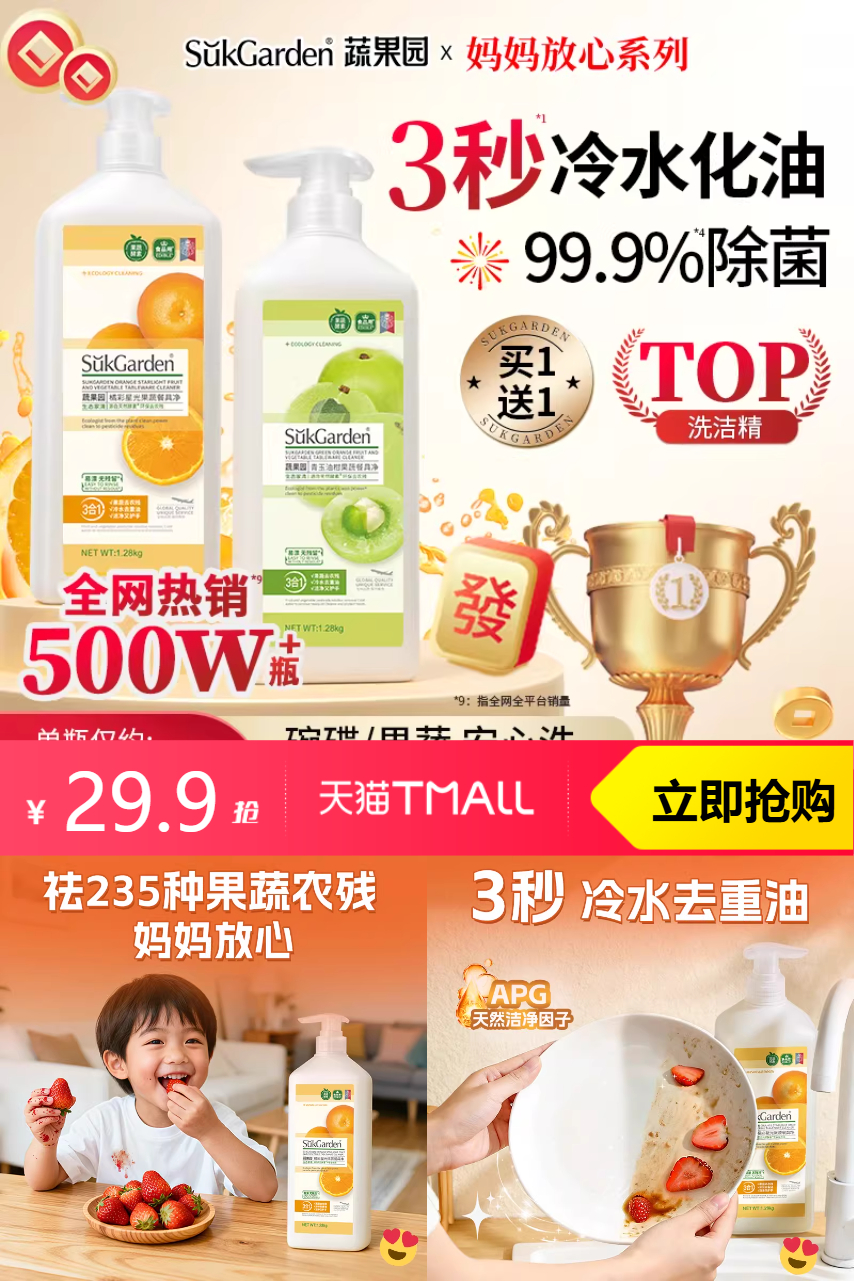 【直降到手29.9+淘金币0.99到手28.91元+叠加消费券到手25.3元】新鲜感溢出的天然成分,轻轻一洗,便带给你与蔬果亲密接触的纯净与健康。
