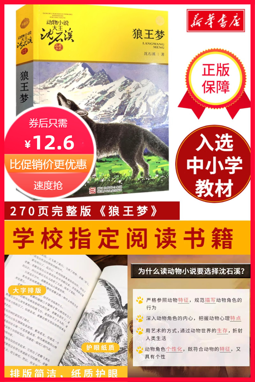 【小说大王沈石溪典藏书】270页完整版《狼王梦》,学校制定阅读书籍,适合9-12岁小学生四五六年级阅读的经典书籍。增加您的孩子课外学习,内容有趣生动,正版书籍。