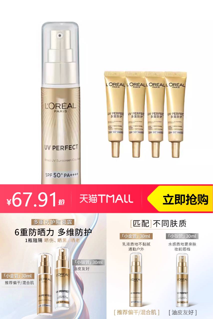 欧莱雅 欧莱雅小金管防晒乳买30ml赠30ml 200元减132.09 商品纠错