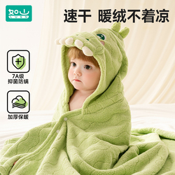 珊瑚绒吸水婴儿抱被浴巾连帽抱毯