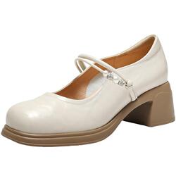百丽粗跟玛丽珍鞋子女26春季新款复古
