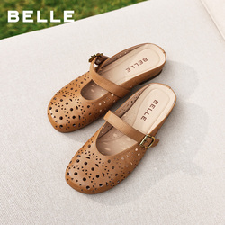 百丽度假风羊皮洞洞穆勒鞋女26夏新商场款