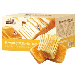 【三只松鼠_黄油水牛乳千层吐司1kg】手撕面包整箱糕点点心水牛奶
