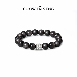 周大生黑曜岩手串男款,纯银S925国潮男士手链实用新年礼物送男友