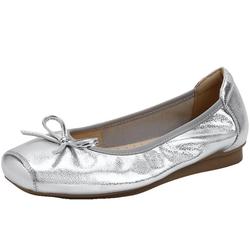 时尚百丽,优雅品味。这款浅口软底银色平底芭蕾鞋,精选优质面料,舒适柔软,适合日常穿着。独特的设计元素,展现女性魅力,无论是休闲还是正式场合都能轻松驾驭。