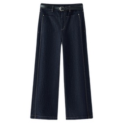 森马牛仔裤女春季腰带高腰分割长裤显腿长女士高街百搭潮酷阔腿裤