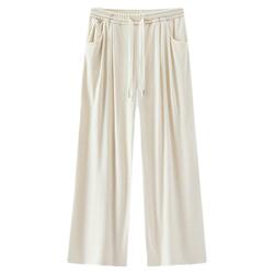 森马休闲裤女春季打褶松紧腰蕾丝糯米裤宽松垂坠感2026新款阔腿裤