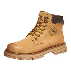 王俊凯同款骆驼马丁靴男冬季高帮保暖大黄靴情侣真皮户外工装靴女