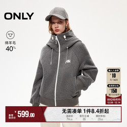 ONLY2025冬季新款休闲保暖宽松含绵羊毛毛呢大衣连帽抽绳拉链外套,采用暖感毛呢面料,连帽大立领设计,短款款式,适合各种场合穿着,保暖舒适,品质。