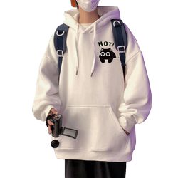 潮流宽松卡通小猫印花连帽卫衣