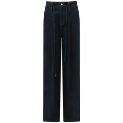 【精选款】COCOBELLA设计感腰带直筒牛仔裤女宽松休闲高腰打褶阔腿裤,打造时尚都市女性魅力。