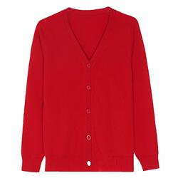 恒源祥中国红色长袖V领羊毛开衫