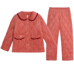 GGX保暖珊瑚绒睡衣女中长款大码加厚家居服