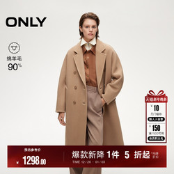 ONLY腰带舒适绵羊毛毛呢大衣
