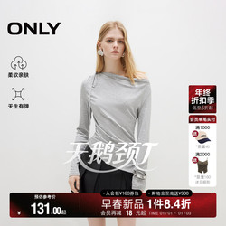 ONLY2025秋季新款纯色舒适弹力修身一字荡领不规则下摆长袖T恤女,透气亲肤,打底外穿,柔软有弹力,性感显瘦,优衣库品质,多色可选,简约百搭小清新~减龄神衣~怎么搭配都好看!