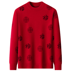 爸爸本命年红色毛衣加厚保暖中年男士福字马年打底衫中老年人男装