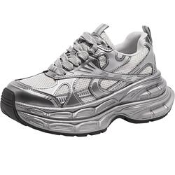 【迪丽热巴同款】骆驼银月老爹鞋女银色厚底增高情侣休闲运动鞋子