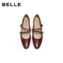 百丽复古羊皮红色玛丽珍鞋女2026