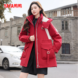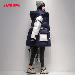 鸭鸭冬季新品中长款连帽羽绒服鹅绒保暖外套