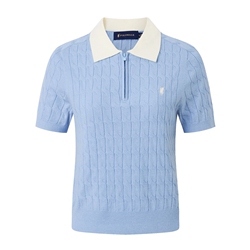 POLOWALK官方旗舰店推出新款女式短袖针织衫,采用撞色设计,翻领设计增添时尚感,半拉链设计方便穿脱。精选优质面料,舒适透气,适合春季穿着。